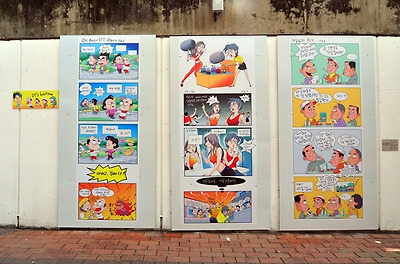 추억의 문방구 옆 담벼락에 그려진 벽화예요.