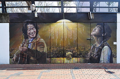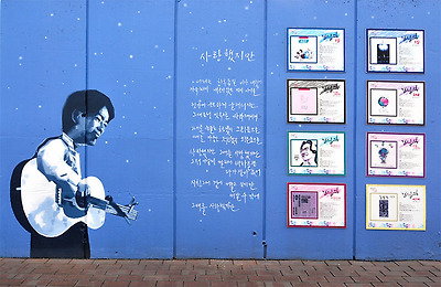 벽화 뿐만 아니라 김광석 조형물, 골목방송 스튜디오, 야외공연장까지 더해져 김광석 뿐만 아니라 김광석의 음악까지도 알리고 있죠.