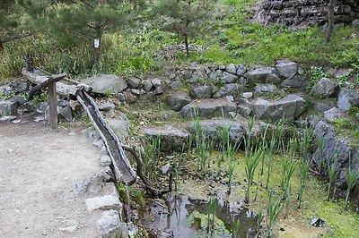 정자 앞에는 '앉은뱅이 약수'가 있어요.