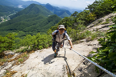 발디딜 곳이 마땅치 않은 매끈한 바위라...