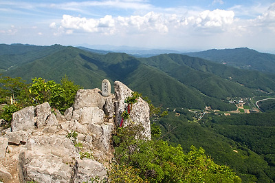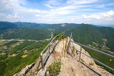 정상부는 큰 봉과 작은 봉으로 이루어져 있고 산불감시초소와...