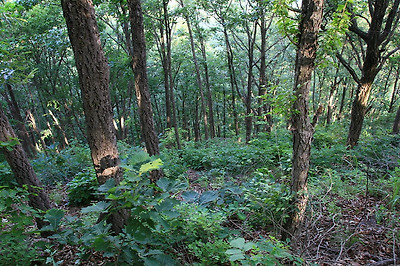 양쪽으로 장뇌삼 재배를 위한 출입통제용 그물망 울타리가 쳐져 있는 길을 내려가는데 기분 나쁘고 섬뜩해지는 동물 울음 소리가 들려옵니다.