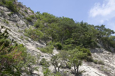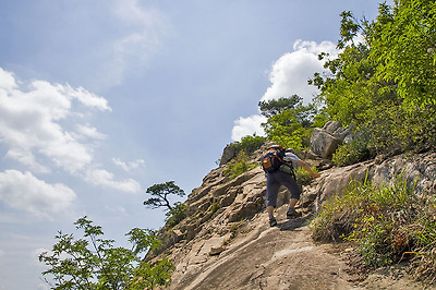 급경사면을 통과하면 잠시 편안한 능선을 따라 오르다 다시 잡목 사이의 그칠 줄 모르고 계속되는 암릉 급사면을 오르게 됩니다.