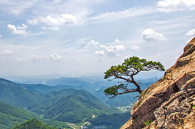 바위 틈에 뿌리를 내리고 꿋꿋이 자라고 있는 신통방통 소나무