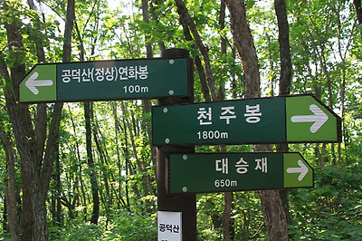 이곳 이정표엔 공덕산까지 2km, 대승사까지 500m라 쓰여 있네요.
