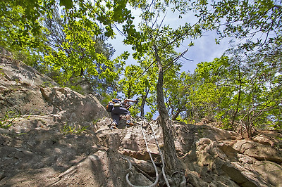 바위에 요철이 많아서 로프를 안잡고도 어느 정도는 오를 수 있을만큼 예전에 올랐던 천태산 대슬랩에 비하면 아주 쉬운 구간이네요. 울 짝꿍이 먼저 오르고...