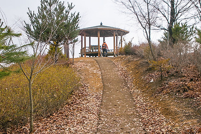 다리를 건너 조금 더 진행하다보니 앞쪽으로 자그마한 쉼터가 눈에 들어오는군요