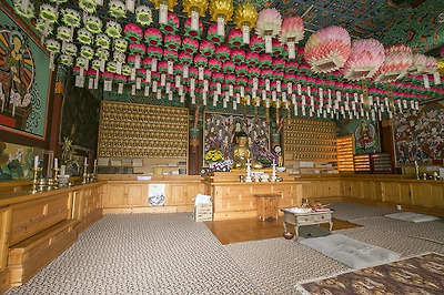 본전인 보광전엔 충청남도 유형문화재 제179호인 목조여래좌상과 충청남도 문화재 자료 제392호인 아미타극락도, 이렇게 두 점의 문화재가 모셔져 있어요.