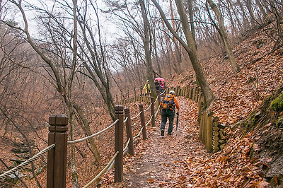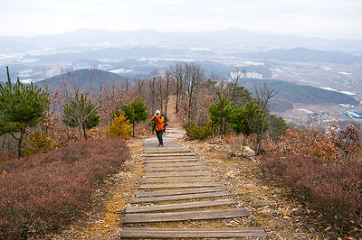 오르내리기 편하게 나무 계단이 설치되어 있지만 이쪽 능선바람소리길은 어쨋거나 계단도 많고 급경사도 있어 하산길로 코스를 잡는게 더 이상적인 듯 싶습니다.
