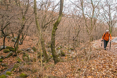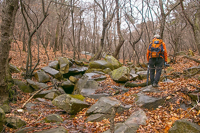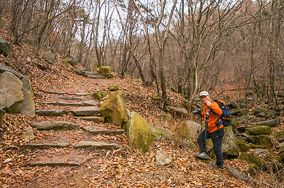 육산이긴 하지만 바위산 좋아하는 라니가 심심하지 않도록 이렇게나마 가끔씩 돌계단도 밟을 수 있고...