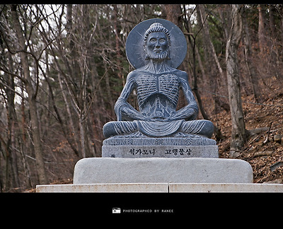 대웅전 옆 동산의 석가모니 고행 불상!!