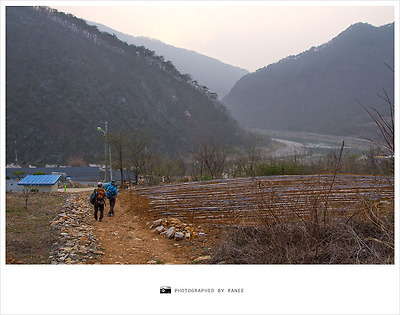 하산을 결정하고 왔던 길을 되돌아 부지런히 문희마을로 향하는 우리들입니다.
