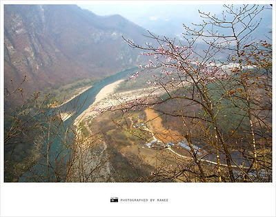 100m쯤 진행하다 뒤돌아 바라본 문희마을과 동강의 모습!!