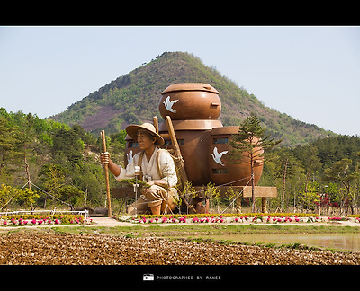 과거에 이 마을에서 항아리를 만들어 내다 팔던 모습을 형상화 한 것이 때문이랍니다.