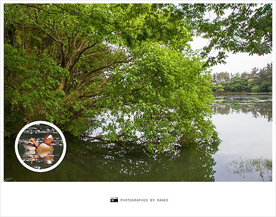 위양지에서 헤엄치고 있는 원앙을 발견했습니다.