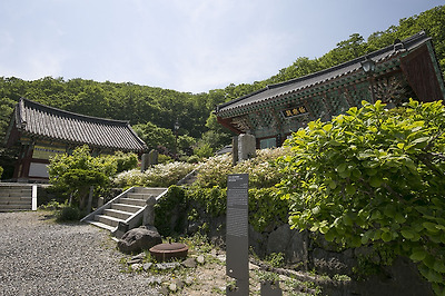 극락전을 중심으로 좌측의 천불전과 우측의 지장전을 함께 담아 봅니다.
