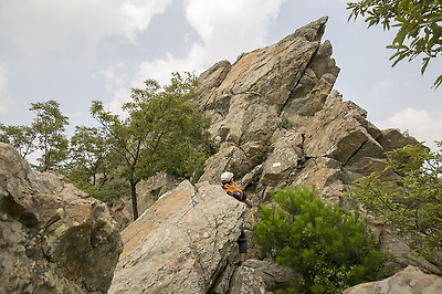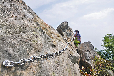 철사다리가 설치된 바위의 각이 직각에 가까운 것 같습니다.