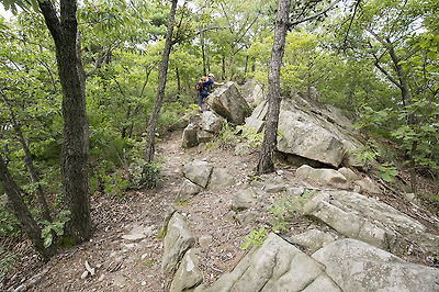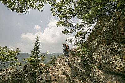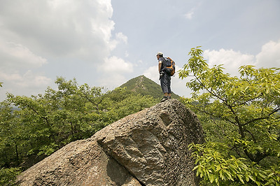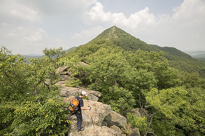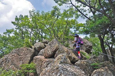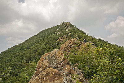 봉우리까지 이어진 바위 능선을 따라 걸어 봅니다.