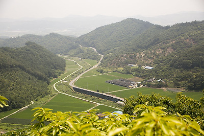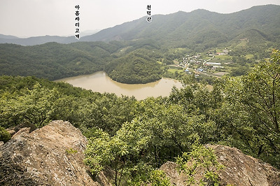 그리고 그 아래로 펼쳐진 상천 저수지와 윗삽티마을이 그림이네요.