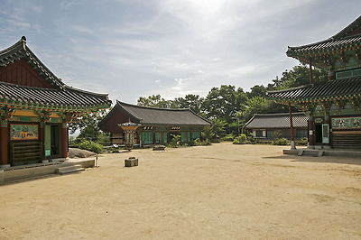 시계방향으로 대광명전, 명부전, 삼성각, 미륵전이 보이고...