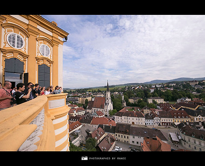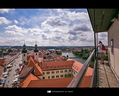 시계탑에 올라가 텔츠 역사지구를 내려다 봅니다.
