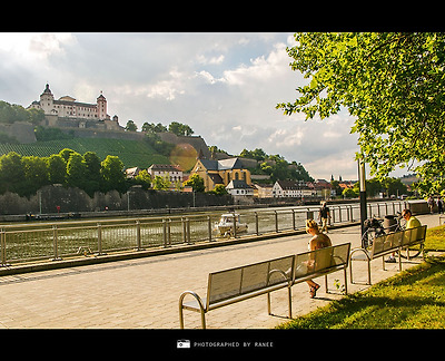 이번엔 마인강변으로 이동하여 마리엔베르크요새를 바라 봅니다.