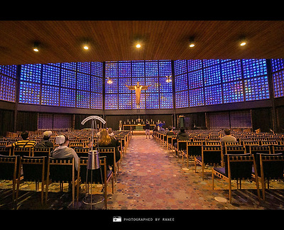 부서진 교회 앞에 있는 현대식 건물은 빌헬름 교회를 재건하는 대신 새로 지은 교회로, 부서진 교회는 박물관으로 사용하고 있고 예배는 새로 지은 건물에서 본다네요.