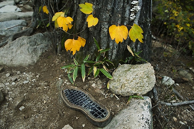 이 신발 주인은 신발 밑창이 떨어져서 애 좀 먹었겠는걸요.ㅎㅎ