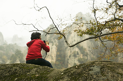 제발 비가 빨리 그쳐주기를 바라며 잠시 비를 피해 기다리고 있는데 여기 저기서 만경대를 다녀온 산객들의 실망어린 푸념이 들려옵니다.