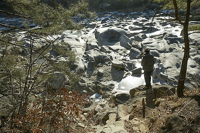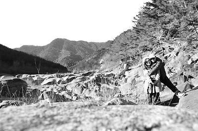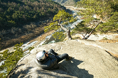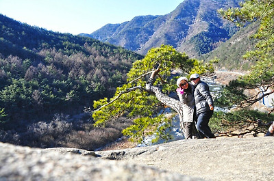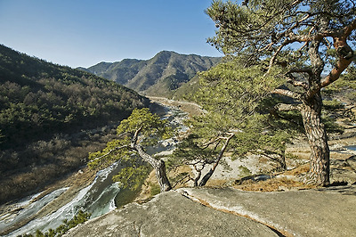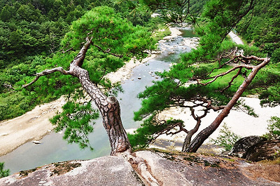 절벽 사이에 뿌리를 내리고 강을 향해 굽어 자라고 있는 두 그루의 소나무는 또 얼마나 시선을 잡아 끄는지...ㅎㅎ