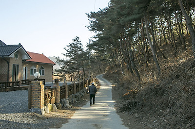주차장에 차를 놓고 한반도지형 전망대까지 1km가 채 되지 않는 길을 걷습니다.