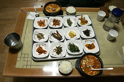 반찬 가짓수는 12가지인데 반찬의 종류는 그때 그때 바뀌는 것 같네요. 제철음식으로.
