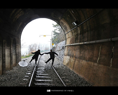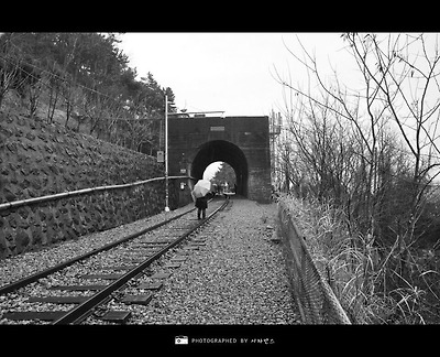비 오는 날이라 우리만의 철길이 될 줄 알았는데