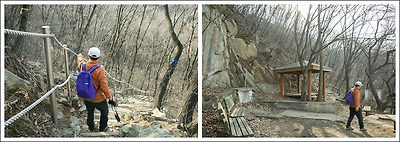 범바위에서 양쪽으로 갈라져 있는 길 중 오른쪽 길을 택해 오느는 우리들!!