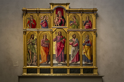Polyptych with Saint James Major, Madonna and Child, and Saint