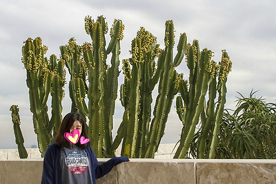 선인장정원을 배경으로