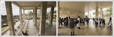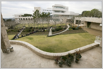 게티 미술관은 닫힌 공간의 연속으로 되어 있는 대부분의 다른 미술관들과는 전혀 다른 구조로 되어 있거든요.