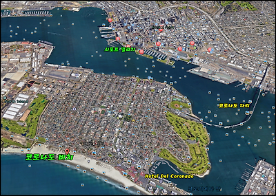 고급스런 주택들이 즐비하고 샌디에이고의 명물인 호텔 델 코로나도해군기지를 가지고 있는 섬이예요.