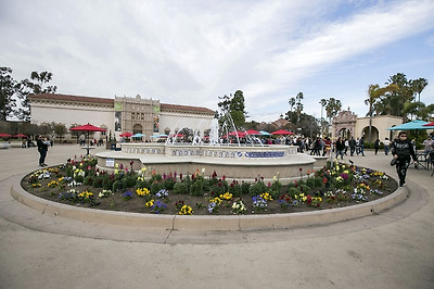 파나마 분수 광장에서 샌디에이고 미술관 (The San Diego Museum of Art)을 배경으로