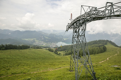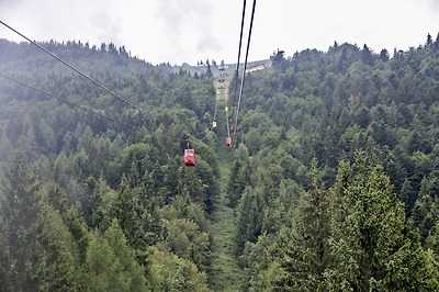 케이블카가 츠뵐퍼 호른을 향해 움직이기 시작합니다.
