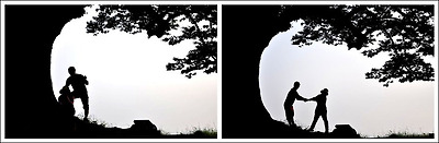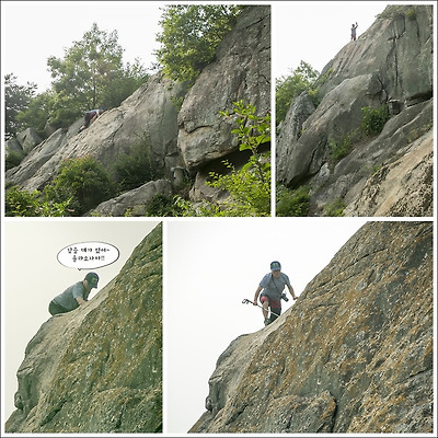 등 뒤로 사라진 짝꿍이 어느새 암벽 위로 올라서는 모습이 보입니다.