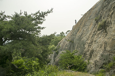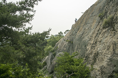 계단길을 오르다 나무 아래 절벽 쪽에서 느껴지는 기척에