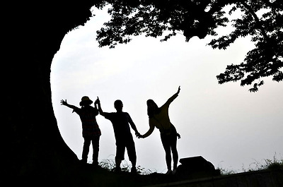 잠시 헤어져 사랑나무 앞에서 만나기로 합니다.