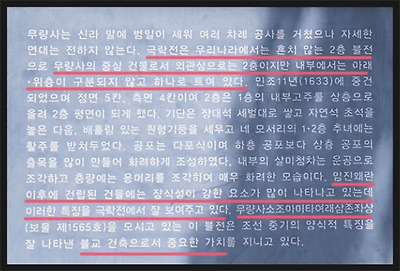 이렇게 2층처럼 보이는 구조로 지은 것은 기능보다 위엄과 장엄에 그 뜻이 있음을 알 수 있으며