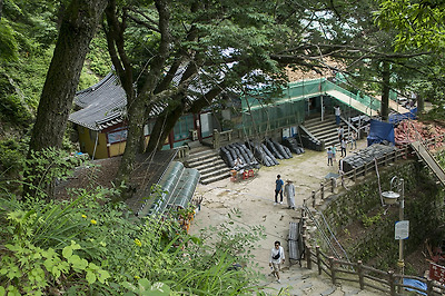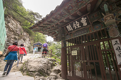 보수공사 중인 고란사의 모습이예요.