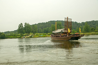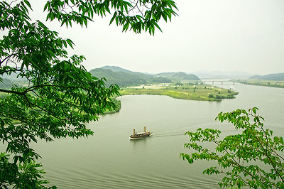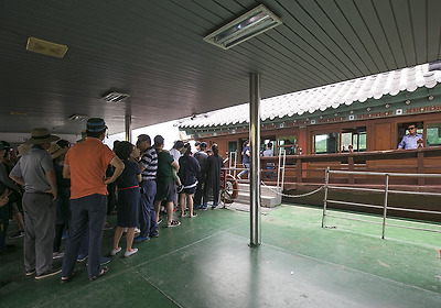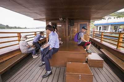 7명 이상이면 일반유람선(통통배?)으로도 수시 출발하고 30명 이상이면 사진 속에 보이는 황포돛배로 갈 수 있어요.