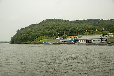 고란사 선착장에서 돌아갈 유람선을 기다립니다.