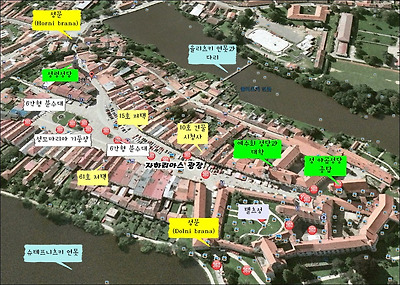 구시가지로 들어가는 2개의 성문 중 하나인 Dolni brana가 앞쪽으로 보이고...