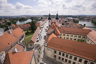 성 야곱 교회 종탑에 올라 360도를 돌며 텔츠의 전경을 바라봅니다.