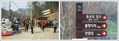 우리는 조금 힘든 걸 감수하고 짧은 거리를 택해 출렁다리 입구로 향했어요.